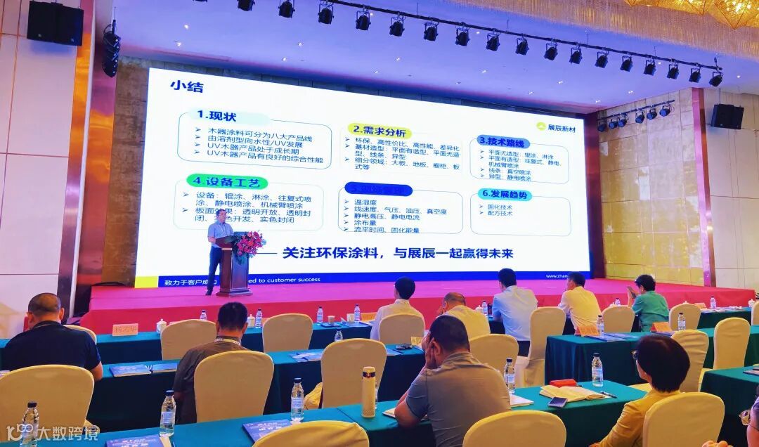 会上,展辰新材技术管理中心总经理助理王向科还为大家带来了《环境友好型紫外光固化木器涂料涂装工艺技术》主题演讲,介绍了UV木器涂料涂装技术现状及发展趋势。