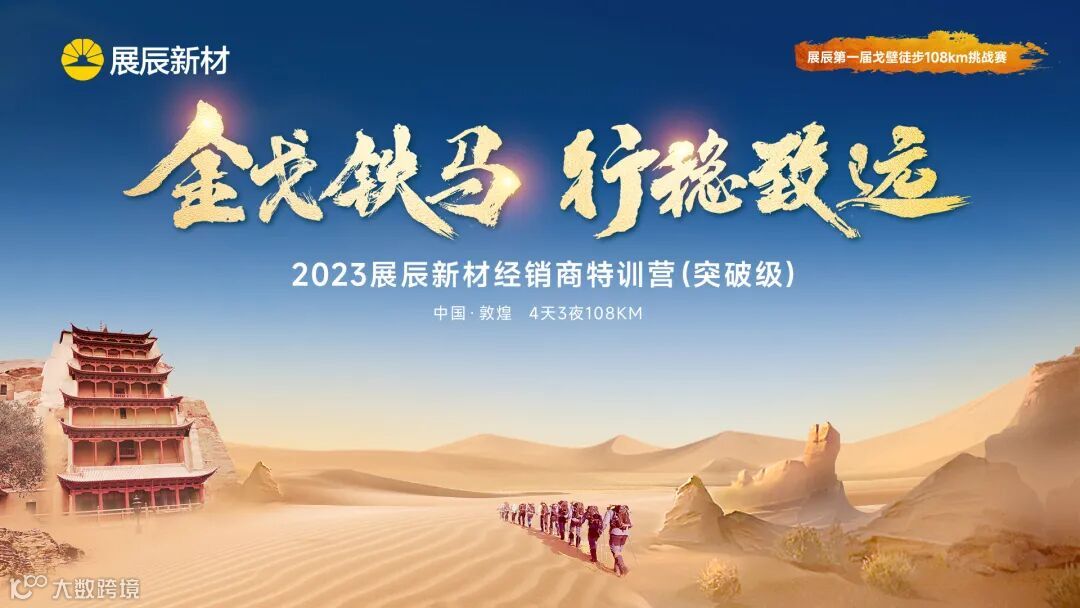 9月11日,天空湛蓝如洗,秋高气爽,以“金戈铁马,行稳致远”为主题的2023展辰新材经销商特训营(突破级)在丝路古城敦煌顺利开营,本次特训营活动,旨在进一步提升经销商伙伴的专业知识,交流经验心得,强化团队凝聚力,更好地把握当下市场机会。