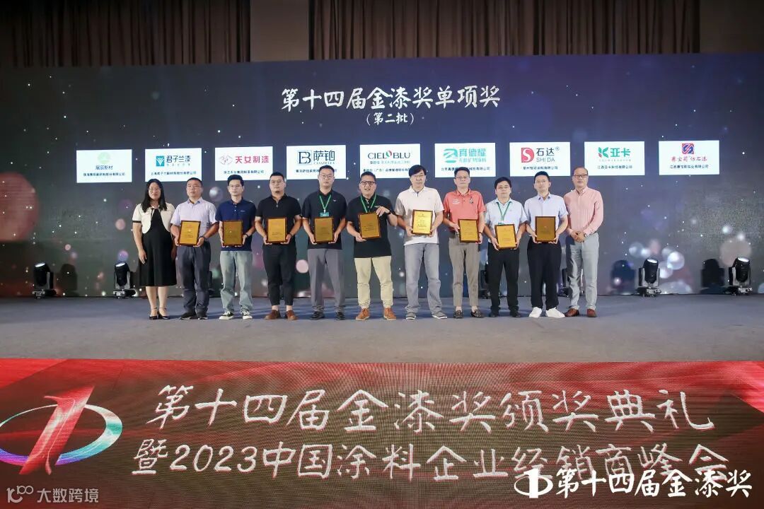 6月8日,以“聚势同行 共绘蓝涂”为主题的2023中国涂料企业经销商峰会暨第十四届金漆奖颁奖典礼在安徽滁州隆重举行!展辰涂料在各涂料品牌中脱颖而出,以雄厚的产品硬实力和强大的品牌影响力荣获“杰出家具涂料品牌”、“杰出水性涂料品牌”、“工业涂料臻选品牌”荣誉;另外,展辰家具涂料经销商丹东华辰、熙润建材荣获“杰出涂料经销商”荣誉。