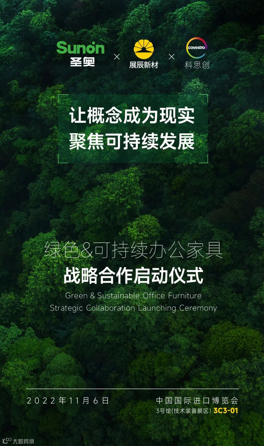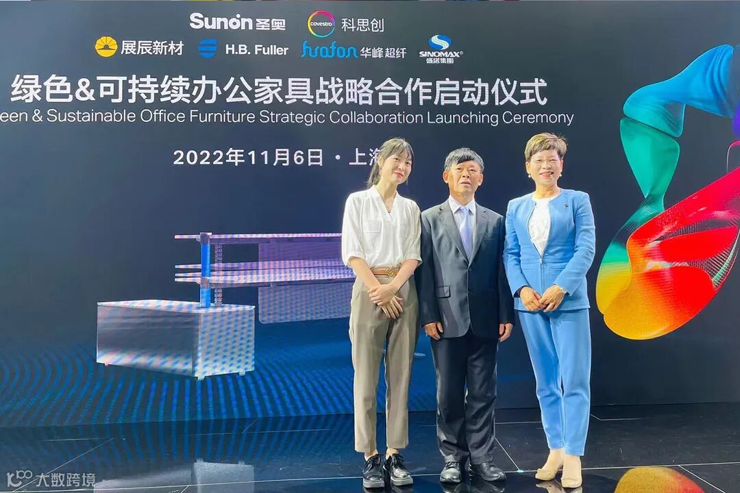 11月6日,在第五届中国国际进口博览会的现场,圣奥科技办公携手战略合作伙伴展辰新材以及聚合物制造商科思创等产业链合作伙伴共同签署《绿色和可持续办公家具战略合作》,以期推动创新型循环材料的商业化应用进程, 降低圣奥产品的碳足迹,促进办公家具行业低碳发展。