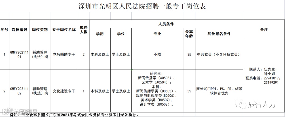 招聘职位详见《光明区人民法院公开招聘一般专干职位表》(附件1)。