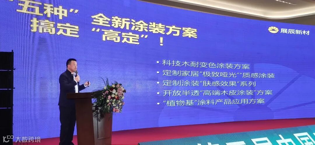 展辰新材青岛公司技术应用部总监李峰为大会带来《新型环保技术产品助力定制家居涂装升级》分享。纵观家居行业的发展历程,每一次家居行业的巨大飞跃都与新材料和工艺技术的运用密不可分。会上,李峰总监就当前定制家居行业对新型涂装的要求,为与会人员带来了关于环保、涂装、色彩的新思路和新见解,介绍了展辰新材的科技木耐变色涂装、定制家居“极致哑光”质感涂装、定制家居“肤感效果”涂装、开放半透高端木皮涂装、植物基涂装等方案。同时,从产品体系、应用经验、服务团队等方面解读了展辰新材的家具环保涂装一揽子解决方案。