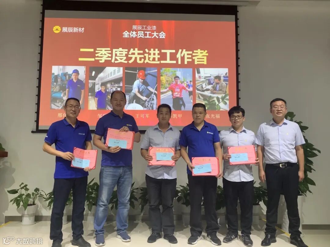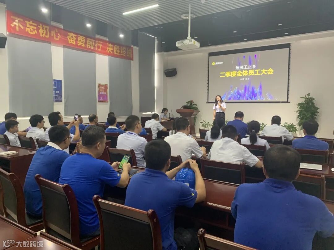 7月31日,展辰工业漆事业部第二季度全体员工大会在珠海工厂举行,全体员工近70人(含线上)参加。