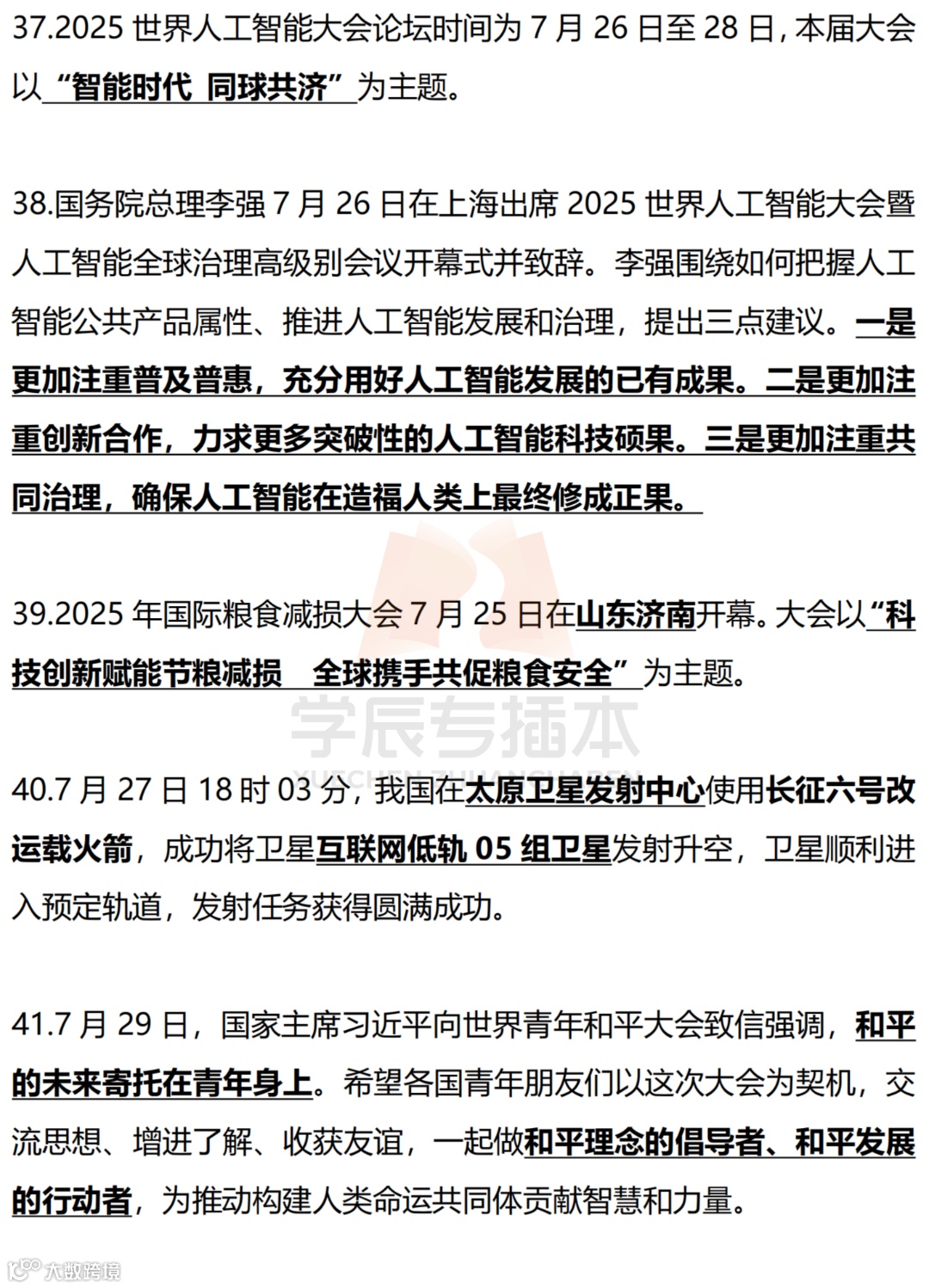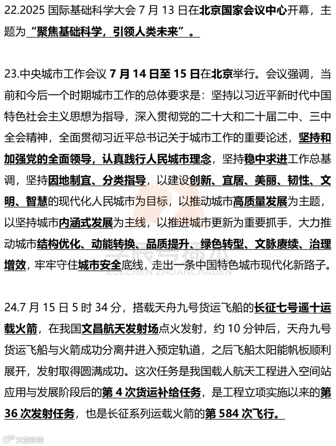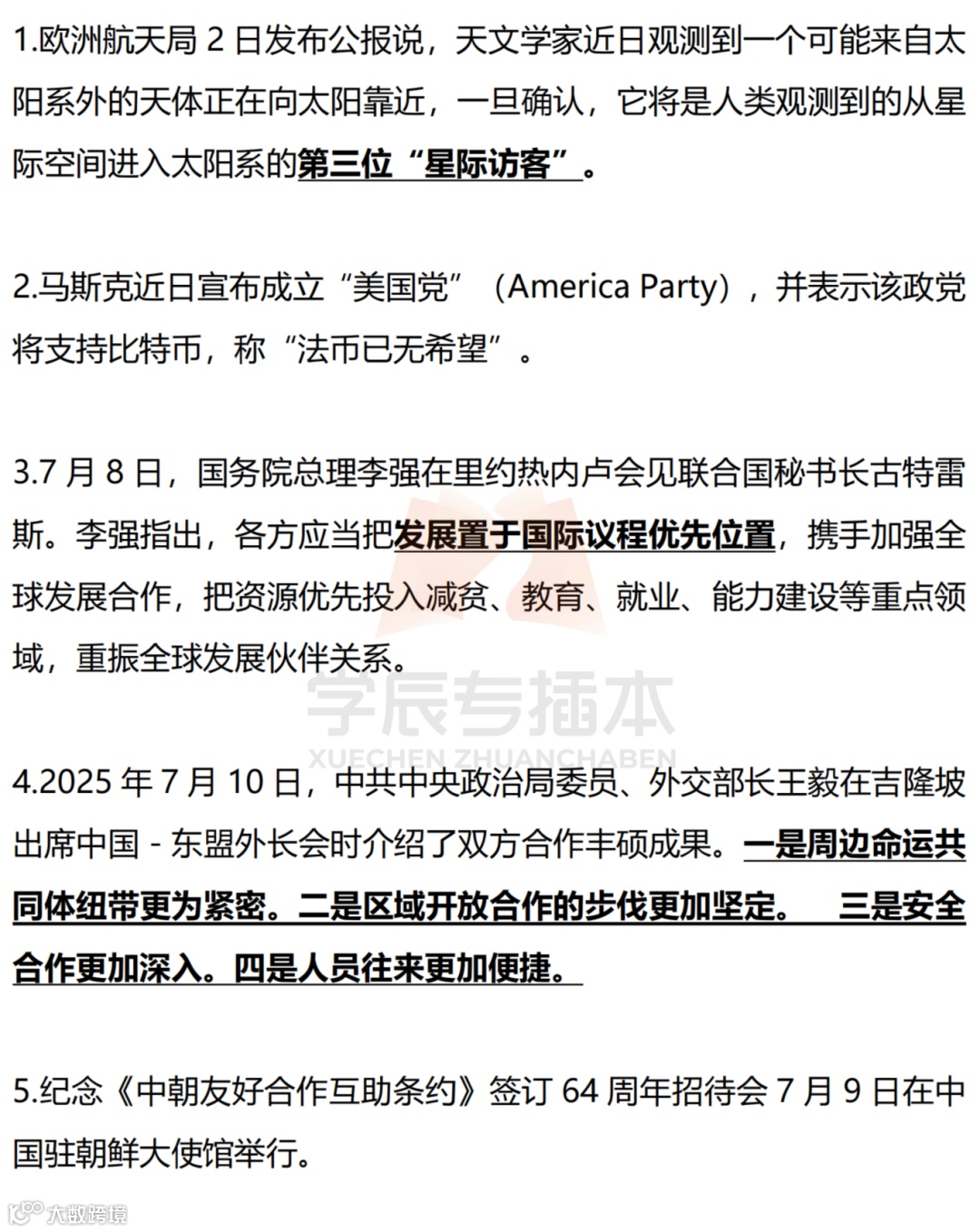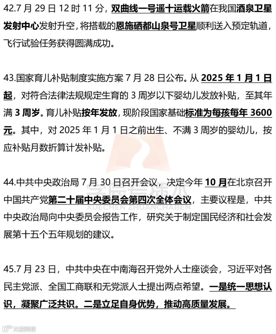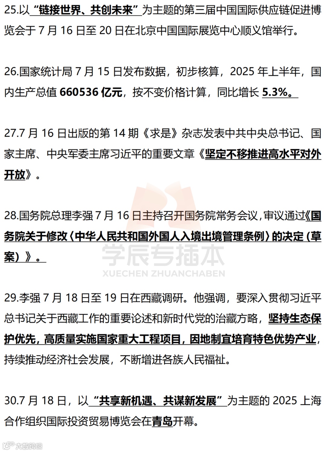 【划重点】2025年时事政治国内外划线版(7月) 学辰专插本