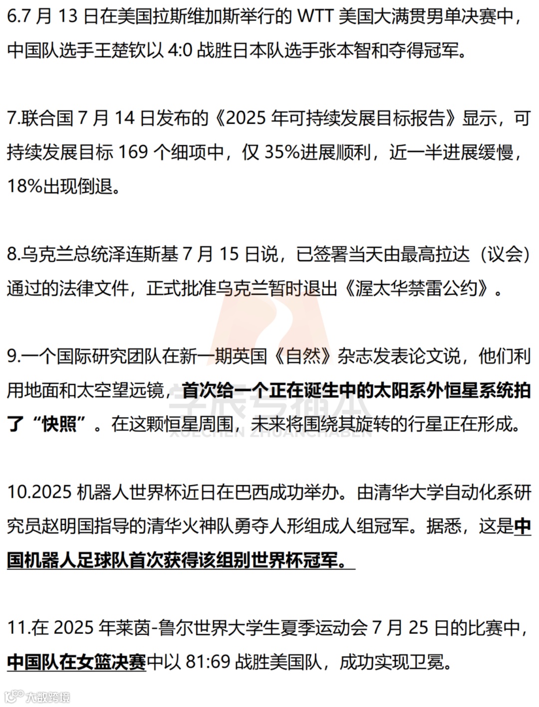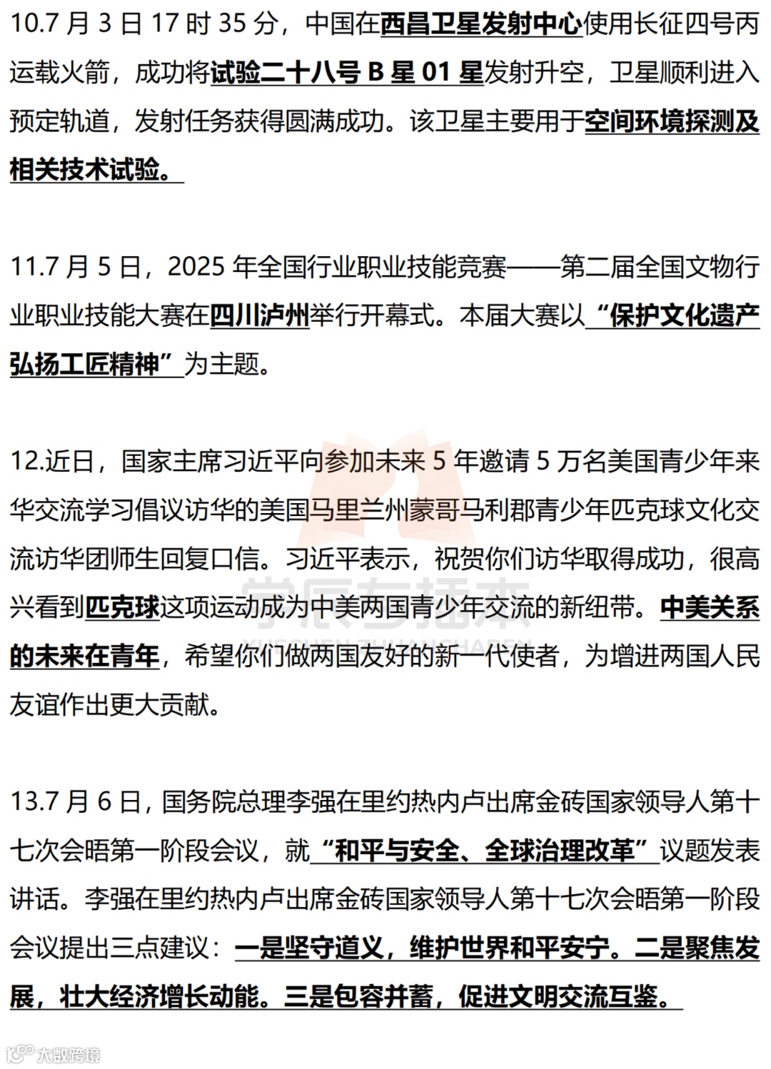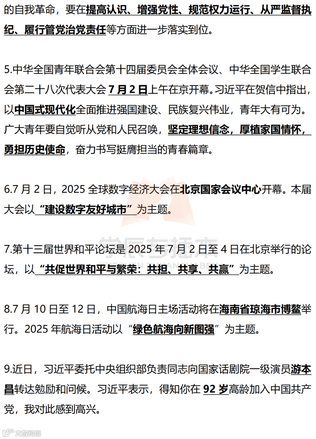 【划重点】2025年时事政治国内外划线版(7月)