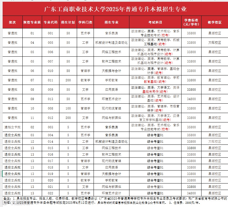 广东理工学院2025年普通高校专升本共开设37个招生专业,涵盖六个学科。拟招生计划2000人(其中退役士兵300,建档立卡30)。