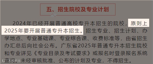 解读:也就是2024年招收插本的院校,正常来说2025年也会招生专插本。