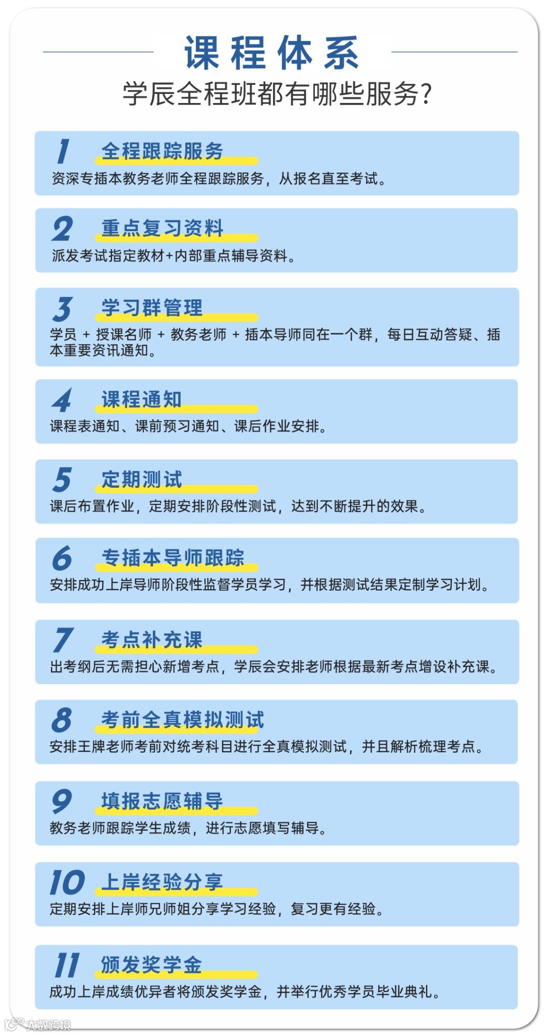 同时学辰还设有随时答疑,定时回访,及时的了解同学们的学习情况,针对同学们学习上所出现的问题做出教学方面的调整。