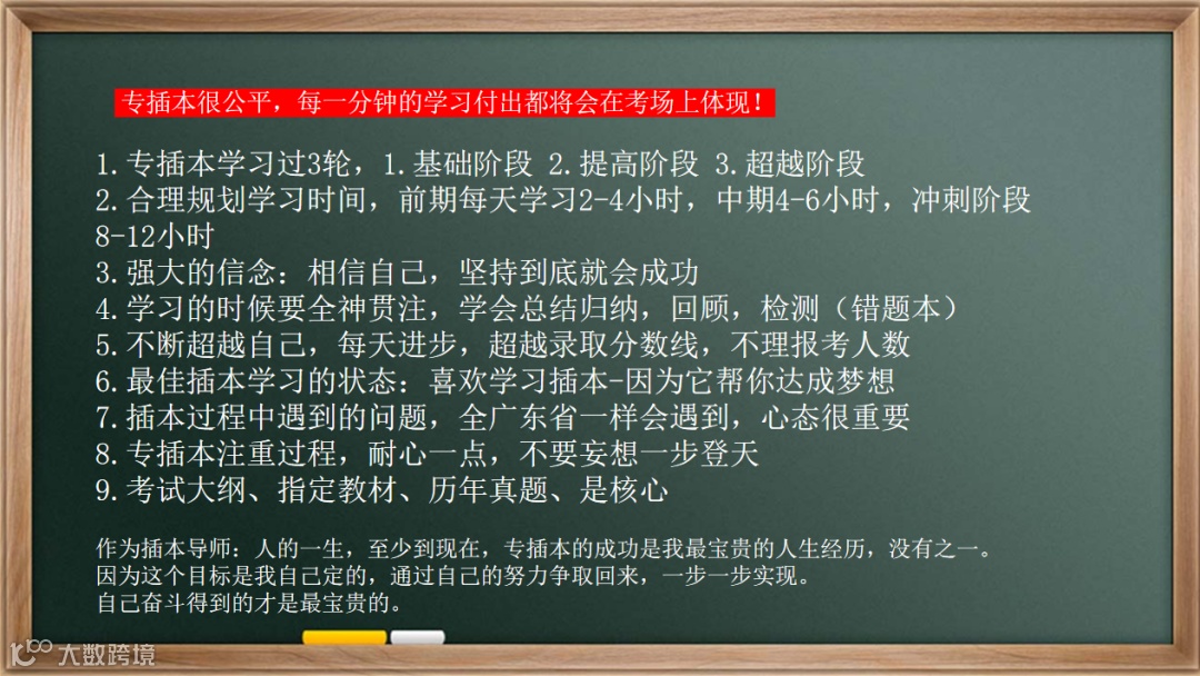 9月开始,插本的备考时间就非常紧张了,需要非常高的复习效率,以及毅力和决心,才能够考入理想院校。