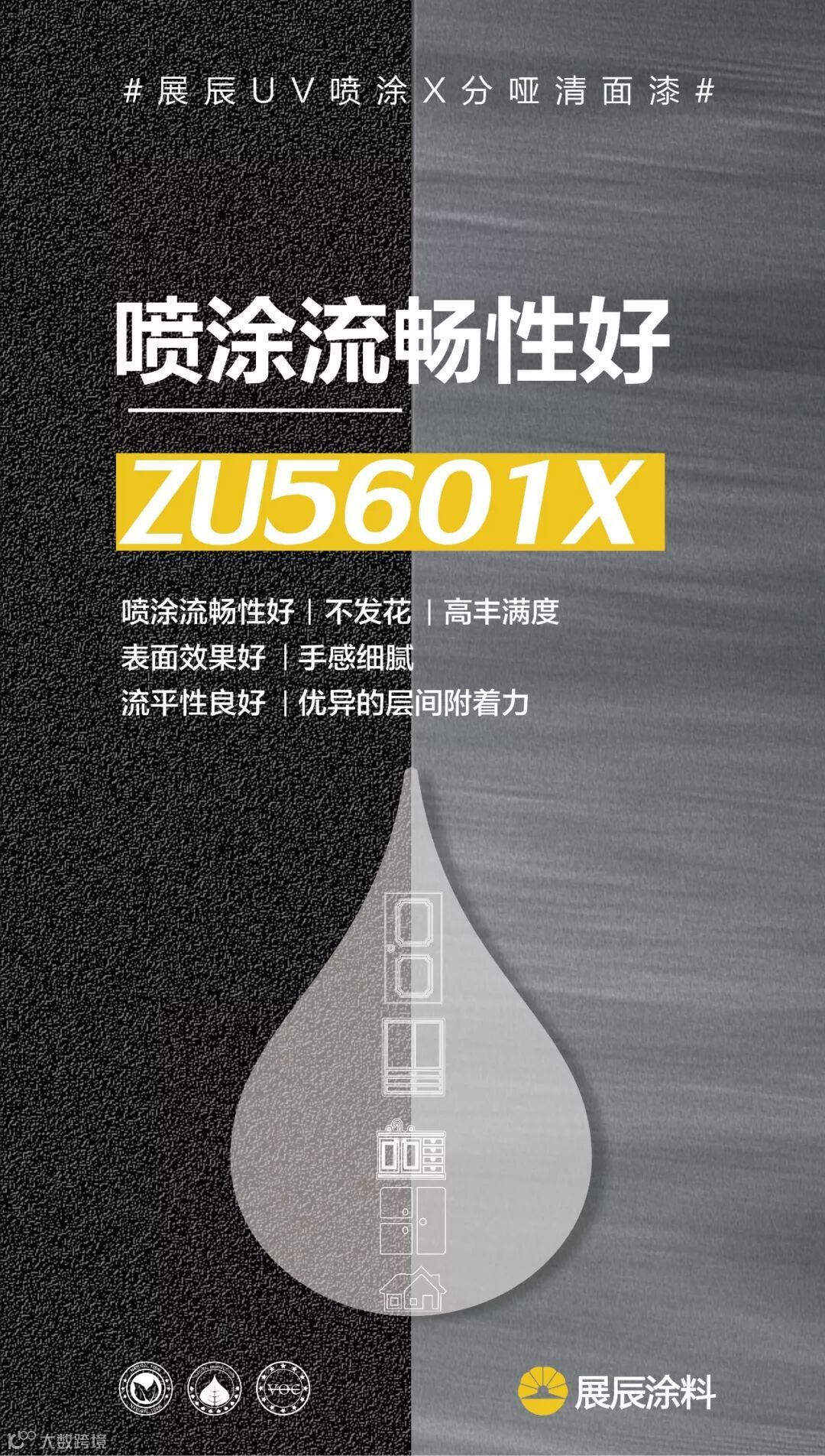 UV涂料作为一种环保型涂料,日益受到市场的青睐,UV往复式喷涂更成为环保涂装的新宠。它是将UV涂料直接喷涂到工件上,再通过紫外光进行固化的涂装作业方式,具有污染小、硬度高、固化快等优势。但与此同时,家具企业也对喷涂产品对基材的附着力,大面积施工的流平性,底漆透明度、打磨性与成本的平衡,以及面漆光泽的稳定性等方面提出了更高的要求。为此,展辰研发团队推出一套高性价比的UV喷涂清漆产品ZU46205、ZU5601X,其具有填充性好、打磨性好、流平性好,喷涂流畅等特点,应用于木门、板式家具、定制家具、套房、橱柜等多个领域,受到客户好评。