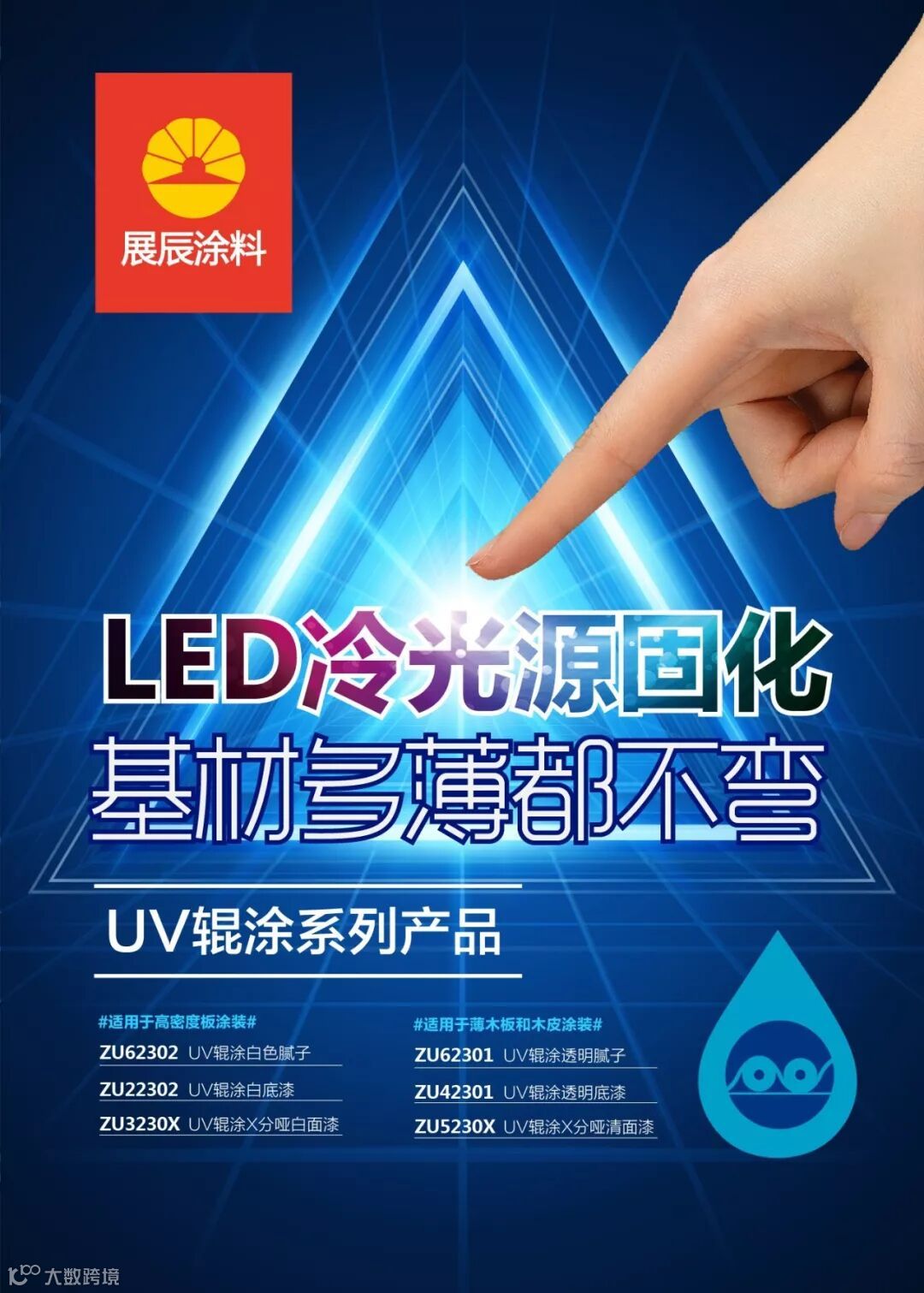 展辰LED光固化涂料,俗称低温光固化涂料或冷光UV。与紫外光固化涂料,同属UV产品系列,除了具有UV涂料的环保、高效、节能、省人工、附着力强的优势以外,还具有低温干燥、基材多薄也涂不弯等不俗之处。