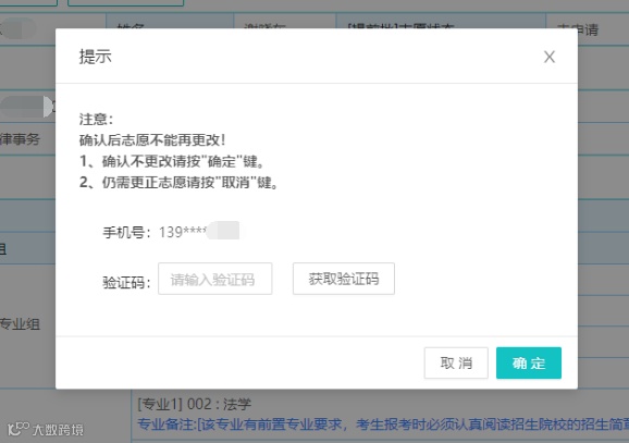 确认志愿后的志愿状态显示为“已确认”,下方会显示取消确认,在规定的志愿填报时间截止后的2小时内(5月17日16:00-18:00),考生志愿信息不可修改,但仍可以获取短信验证码完成志愿确认。