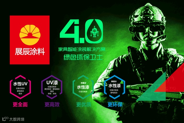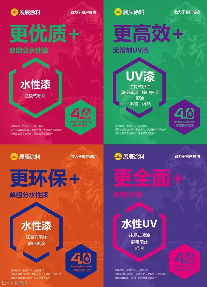 从“漆剑下天山”,到 “家具涂装十二道风味”“展辰十八般漆艺”,再到“家具环保涂装一揽子解决方案”“展辰智能涂装4.0绿色环保卫士”。展辰对涂装的理解和应用,一直在不断超越前行,一直在不断升级完善。“向环保致敬”面向家具企业,推出水性漆、UV漆等环保涂装产品,帮助家具企业实现环保涂装升级。“家具环保涂装一揽子解决方案”,从企业现状分析、涂装生产线规划、运营指导与培训、日常维护与服务为整体思路,为家具企业提供全套服务。