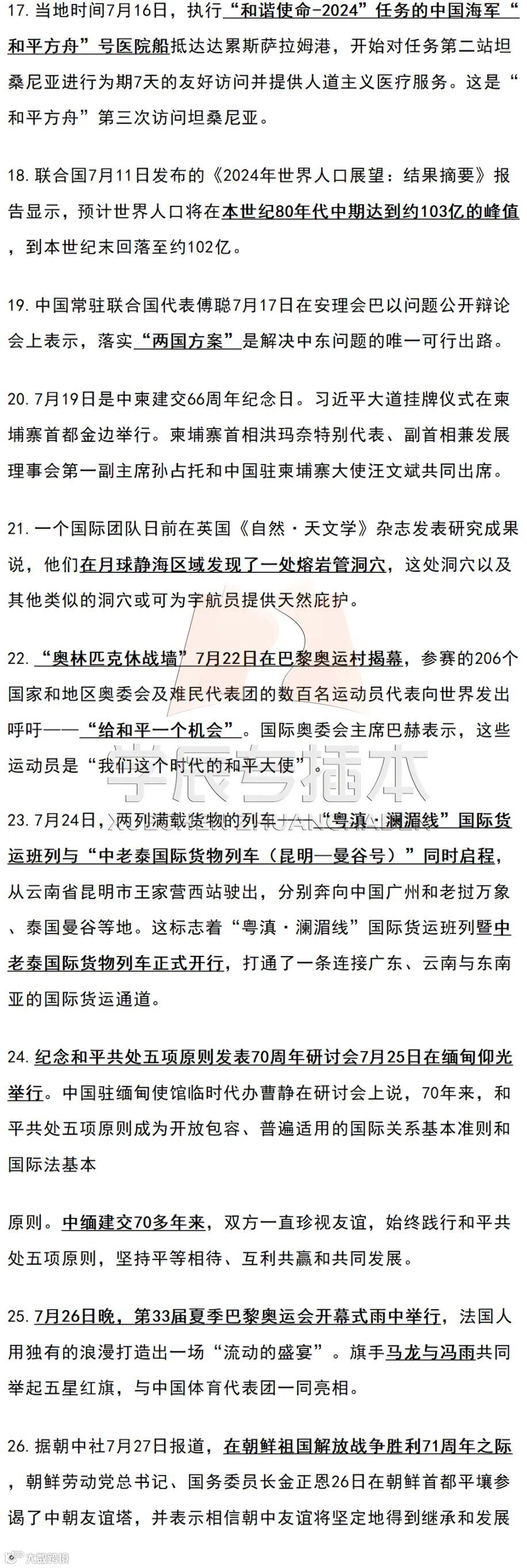 2025年插本政治时事考试范围是:2024年1月1日至12月31日国内外重大时事政治。