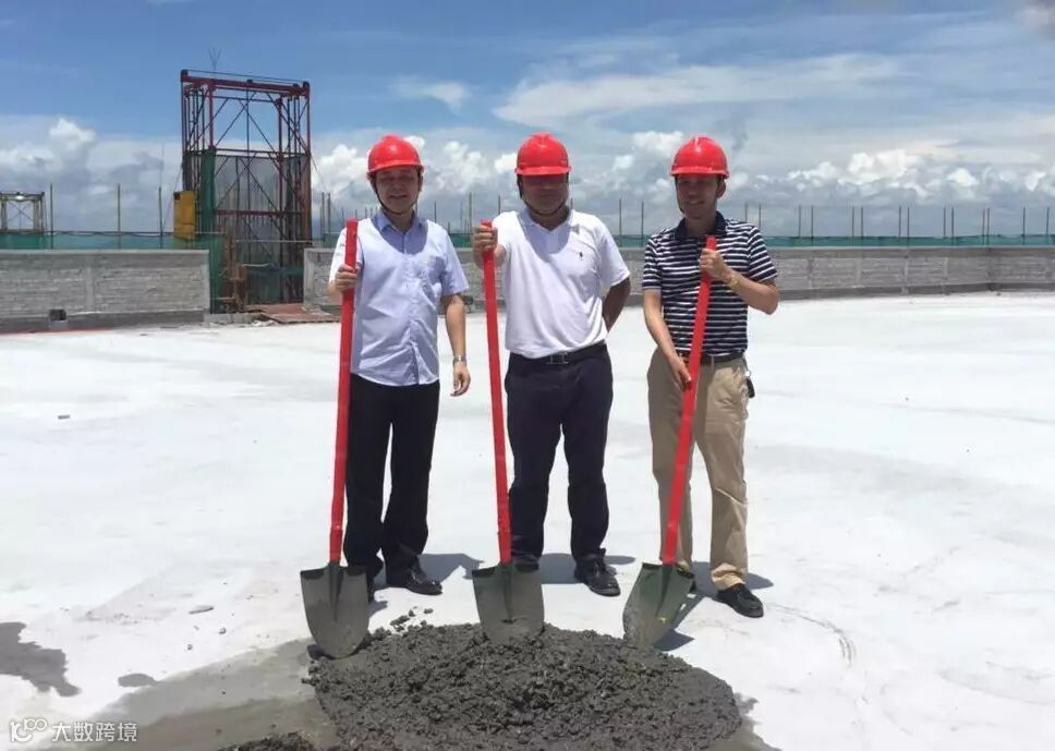 副董事长陈寿生(中)、轮值总裁熊星(左)和施工方康总(右)