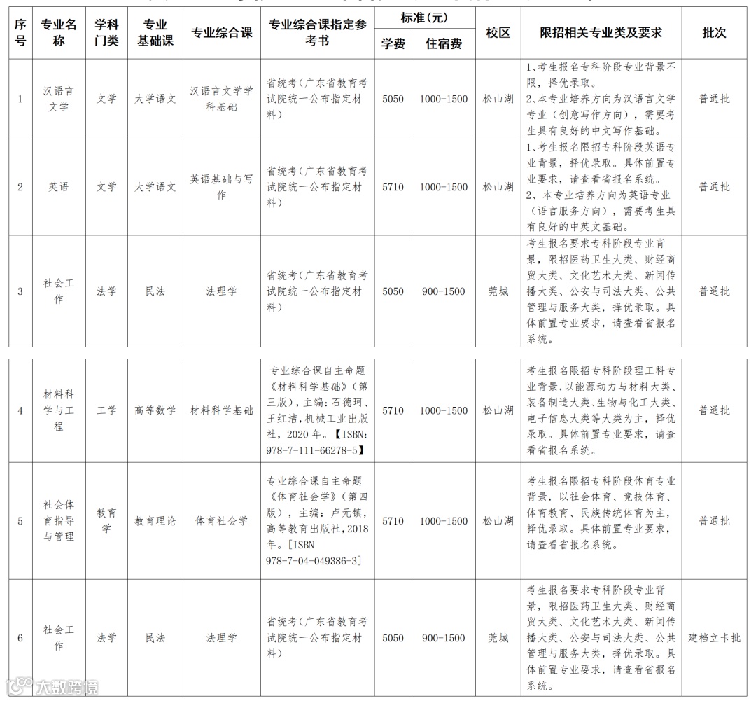 ☞ 除了汉语言文学没有限制,其他专业均有专业限制