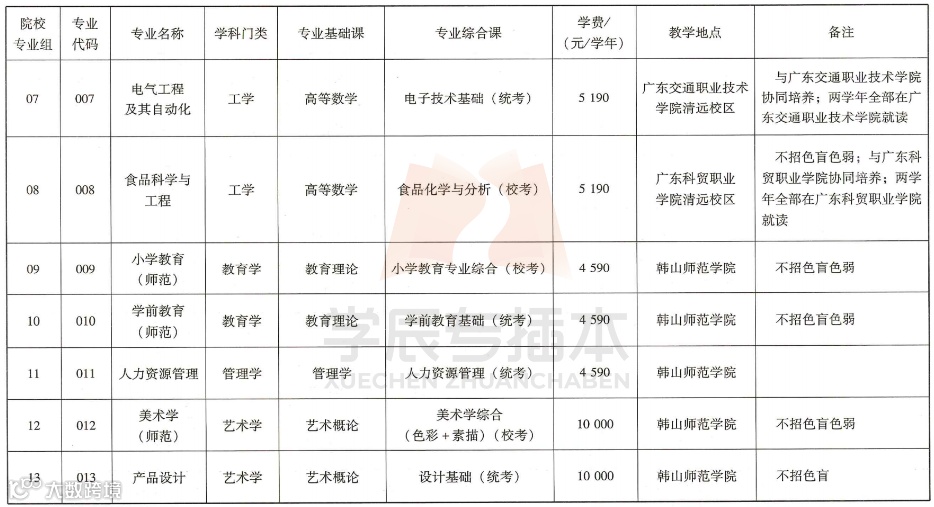 ☞ 有体检限制:计算机科学与技术、视觉传达设计、食品科学与工程、小学教育、学前教育、美术学、产品设计
