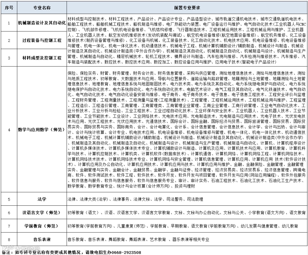 · 取消专业:音乐表演、数学与应用数学(联培)、学前教育(联培)