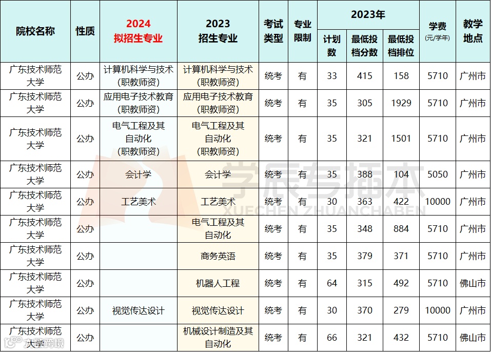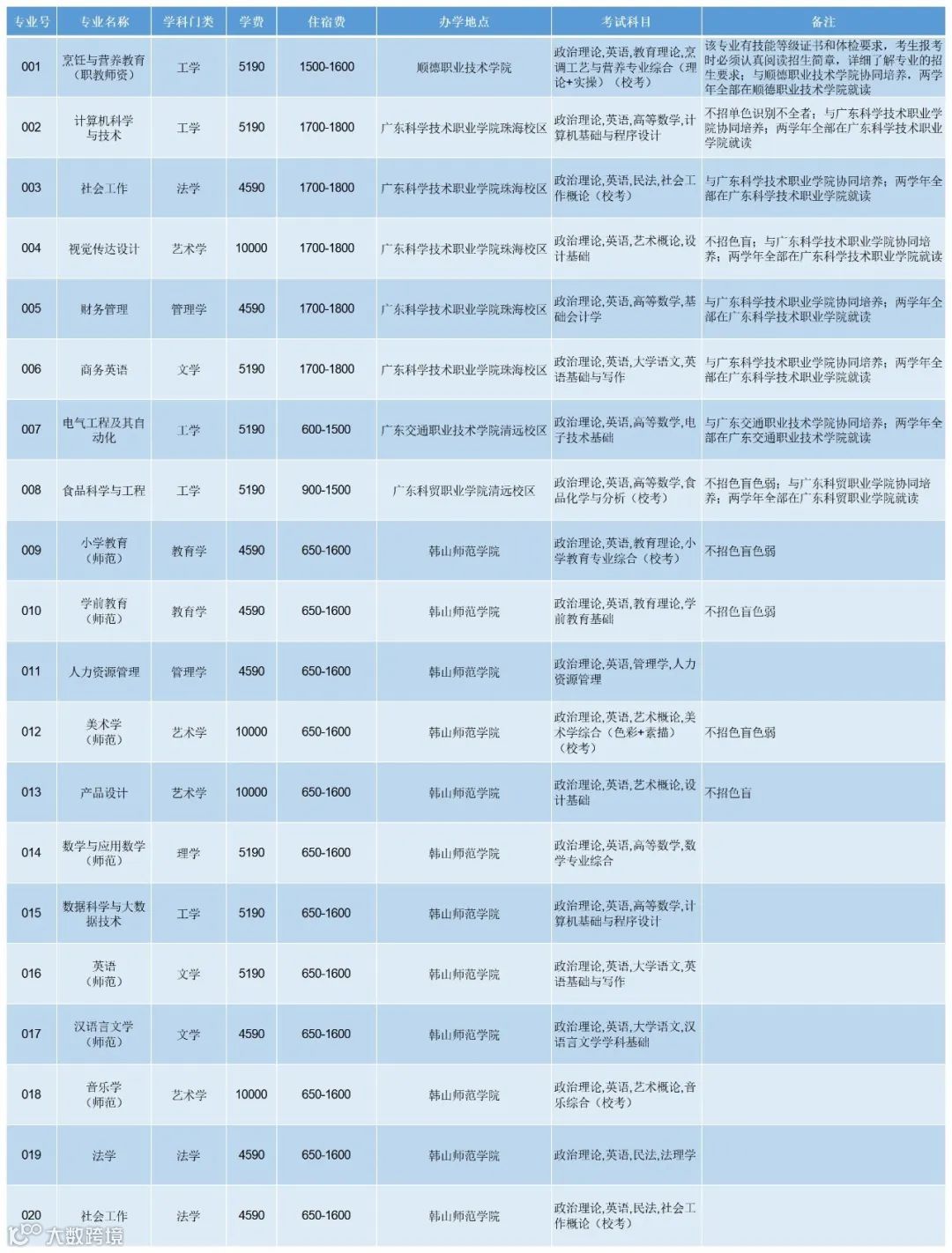 已公布招生简章的公办院校:岭南师范学院、韶关学院、东莞理工学院、广东技术师范大学、韩山师范学院、深圳技术大学、肇庆学院