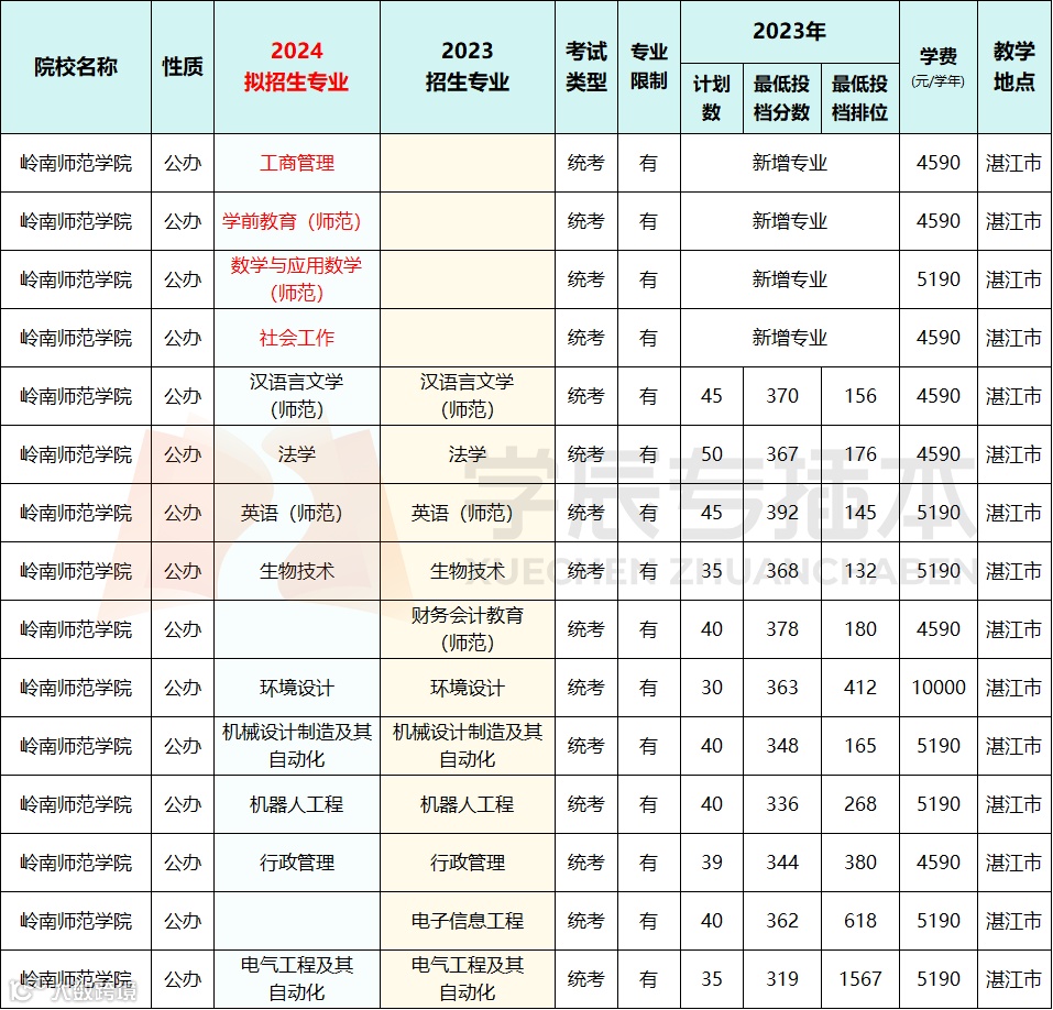 · 24年拟新增大数据管理与应用、汉语言文学、学前教育专业。