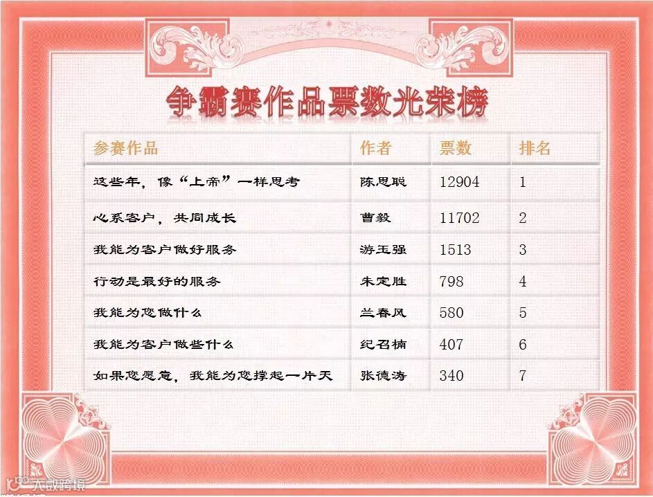 5月29日22:00,争霸赛投票活动结束。此轮评选,作品排名完全由读者投票决定。经过统计,7篇作品共获得28244票,第一名和第二名的争夺尤为激烈!