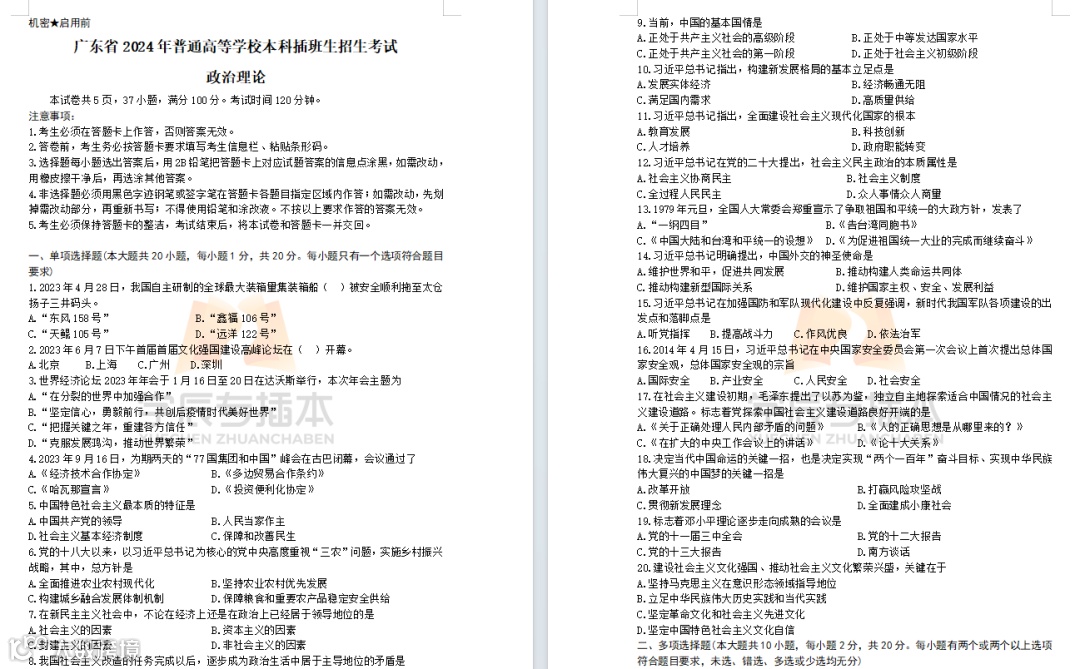后台回复【历年真题】获取专插本历年公共课真题