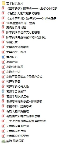 包含:插本重点归纳、思维导图、复习技巧、作文模板、常用公式等