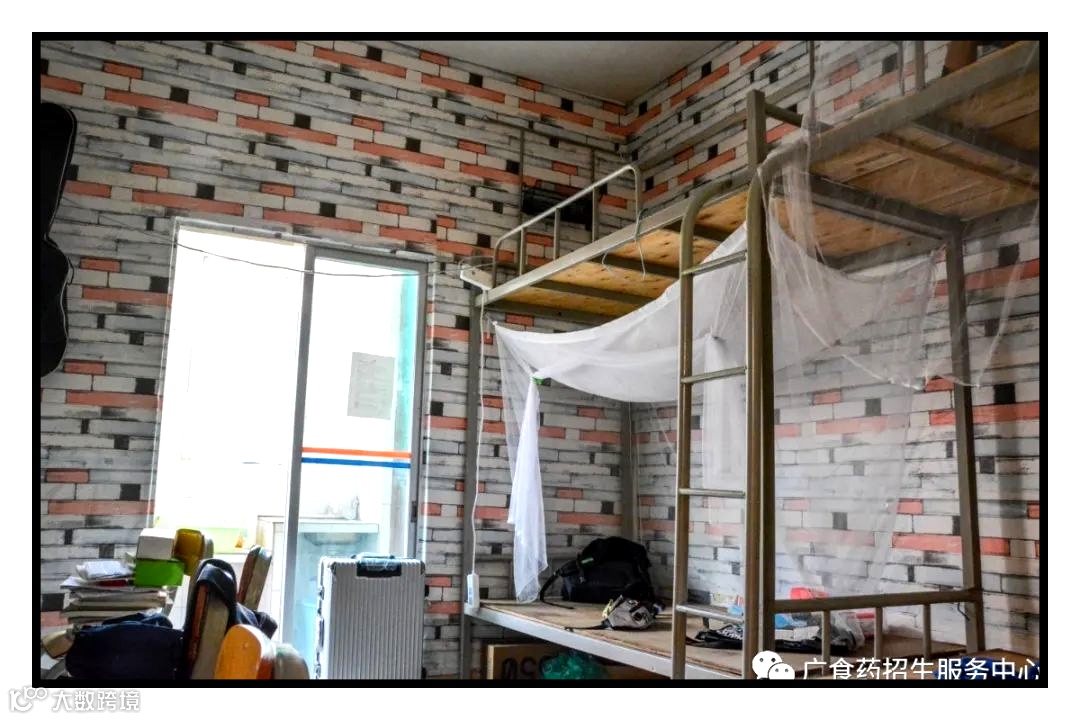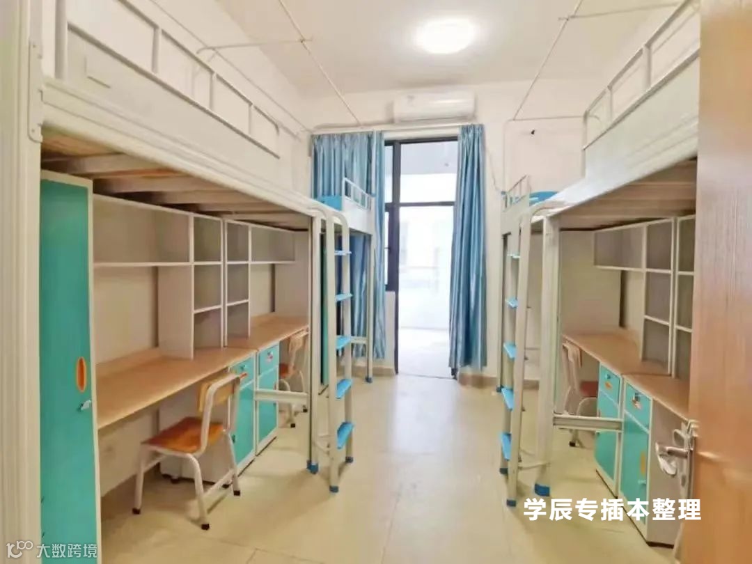 校内宿舍:位于学校内部,风雨操场与阳光大操场中间,5~7人/间,大部分都是上下床,少数上床下桌,有空调,有独立阳台、独立卫生间。注:绿色通道宿舍:12人/间,上下床,没空调。
