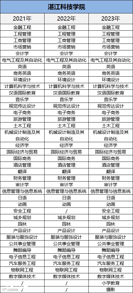 2、根据历年的招生趋势来推测24年的专业是否招生。通常来讲连续3年都招生的专业,下一年招生的概率会很高,较为稳定。