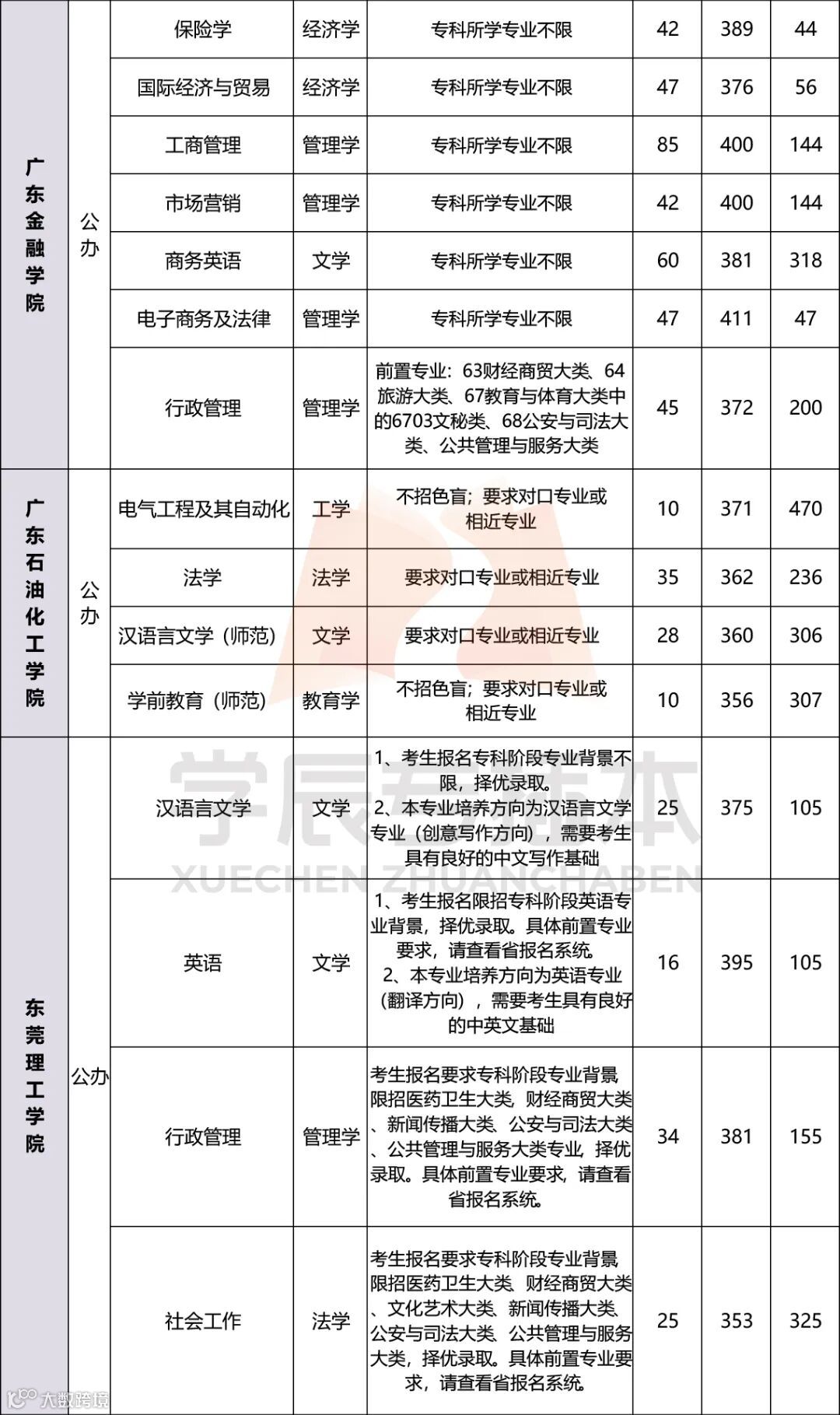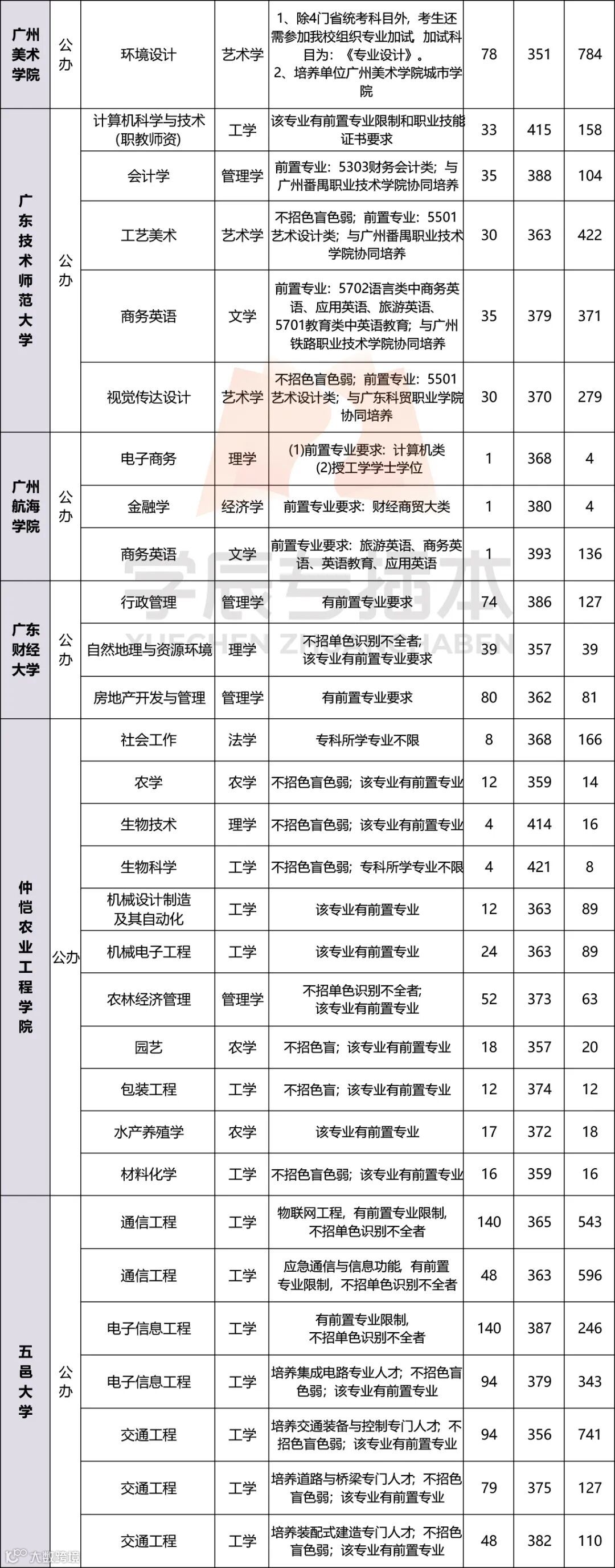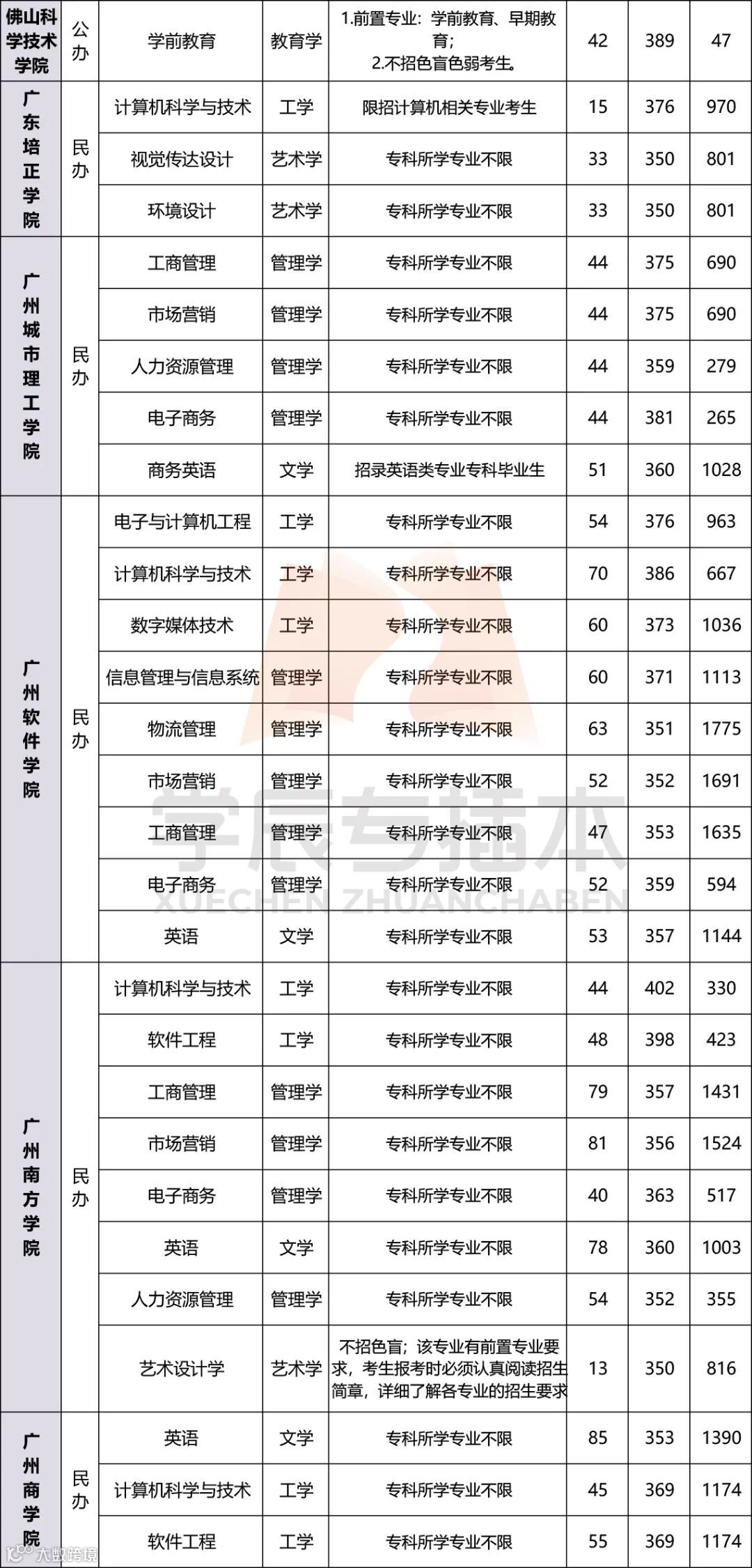 今天小编根据广东省教育考试院公布的2023年专插本投档分数,给同学们整理出了2023年专插本投档最低分350分以上的专业。