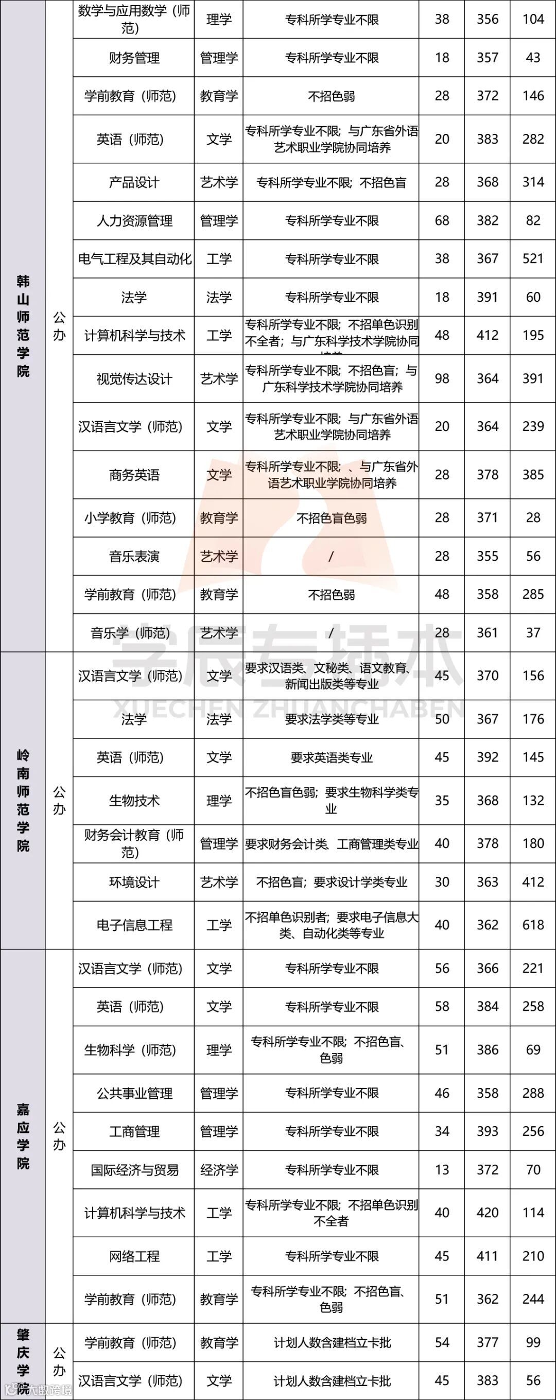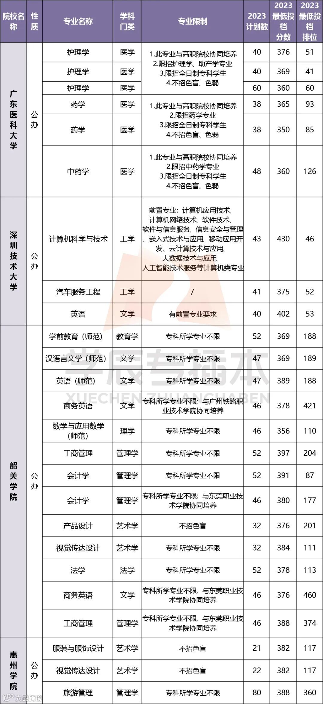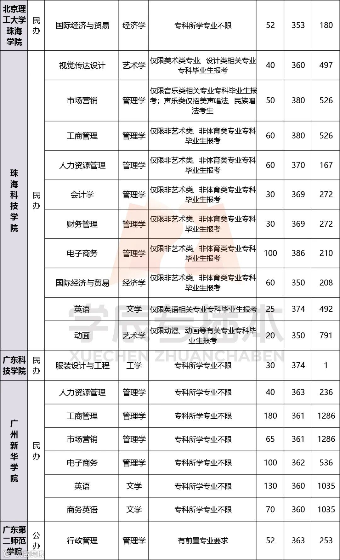 今天小编根据广东省教育考试院公布的2023年专插本投档分数,给同学们整理出了2023年专插本投档最低分350分以上的专业。