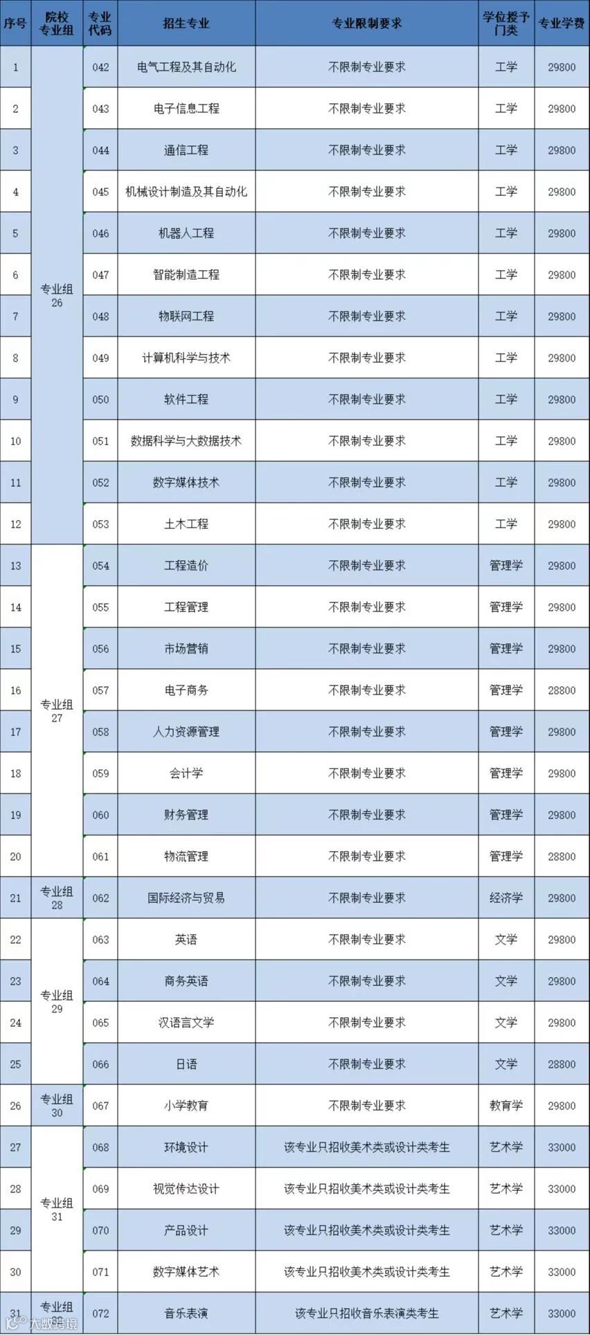 ■ 校考专业有7个,较去年删减3个专业:互联网金融、旅游管理、酒店管理