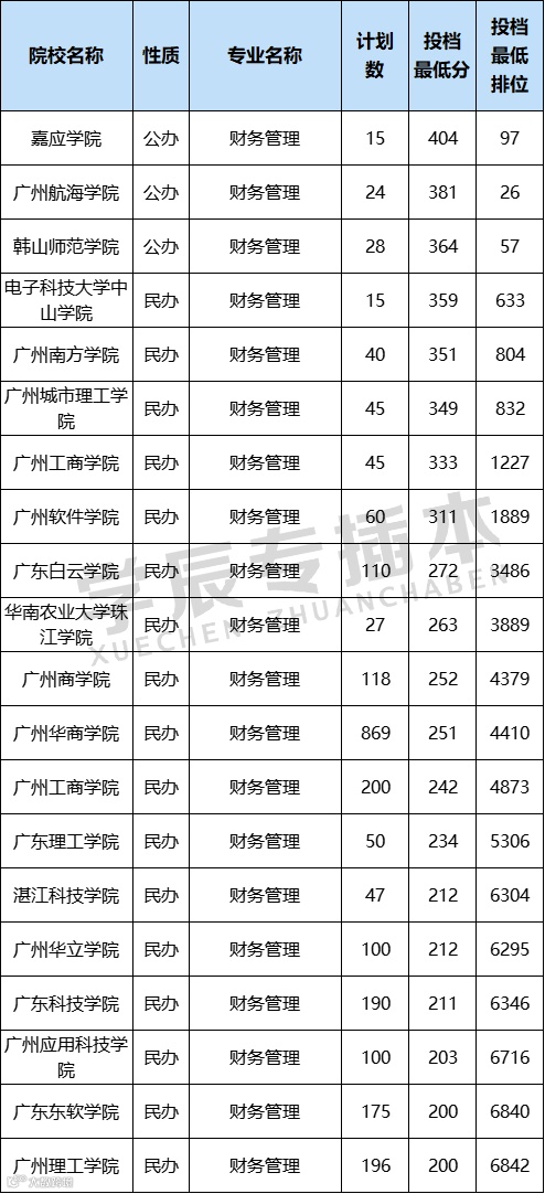 财务管理同样属于会计财务类,不过分数线比会计学专业要稍低一点,考公办需要360分以上。但值得注意,这两所公办的分数线很低是因为专业基础课考高数,而非管理学,所以如果是考管理学的考生还是参考嘉应学院的数据为准。