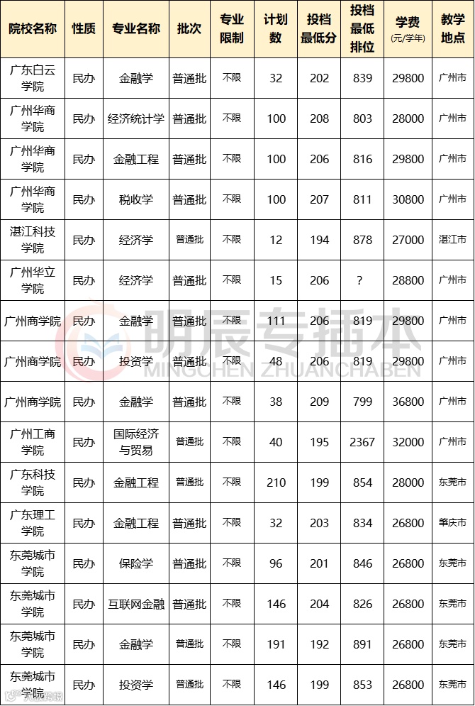 由于民法本身招生计划少,所以小编仅统计250分以下的专业。
