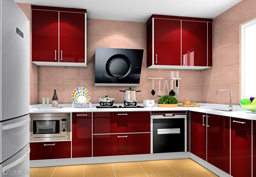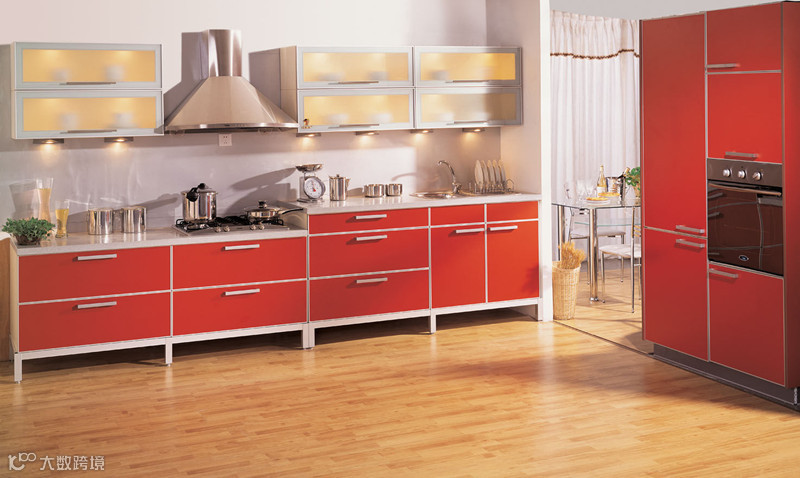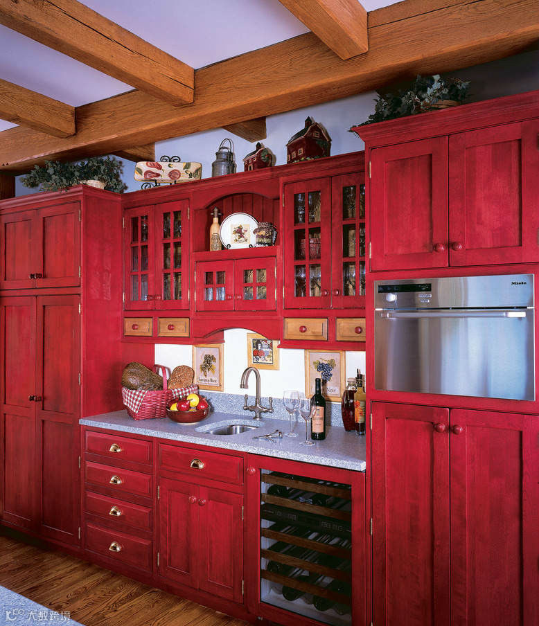 红色橱柜传达出一股奔放和颠覆传统的不羁力量,非常符合年轻人的个性特点。厨房里放置红色的橱柜,能使整间厨房都有靓丽一新的感觉,给人热烈活泼喜庆之感。