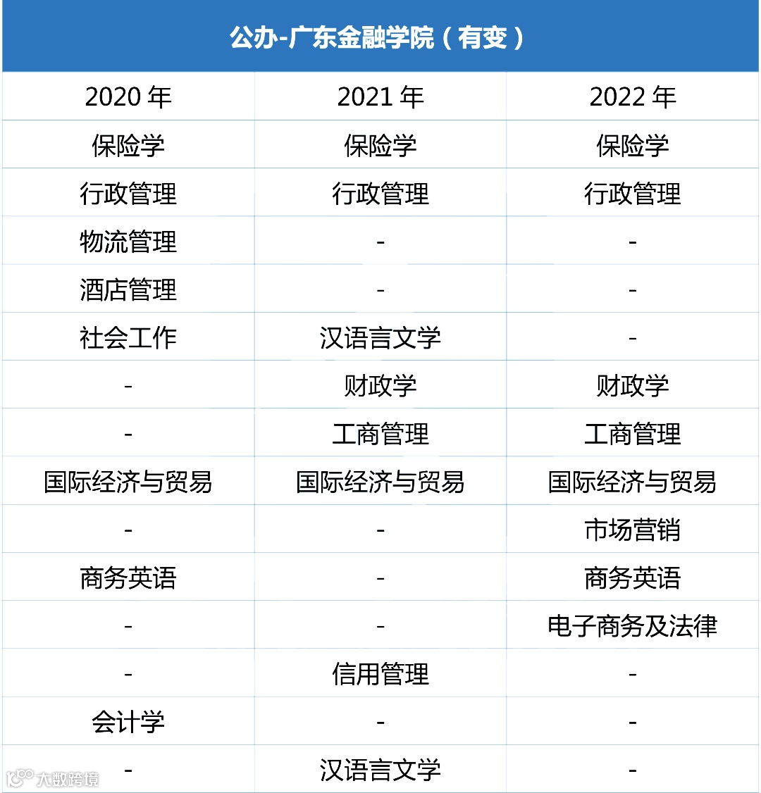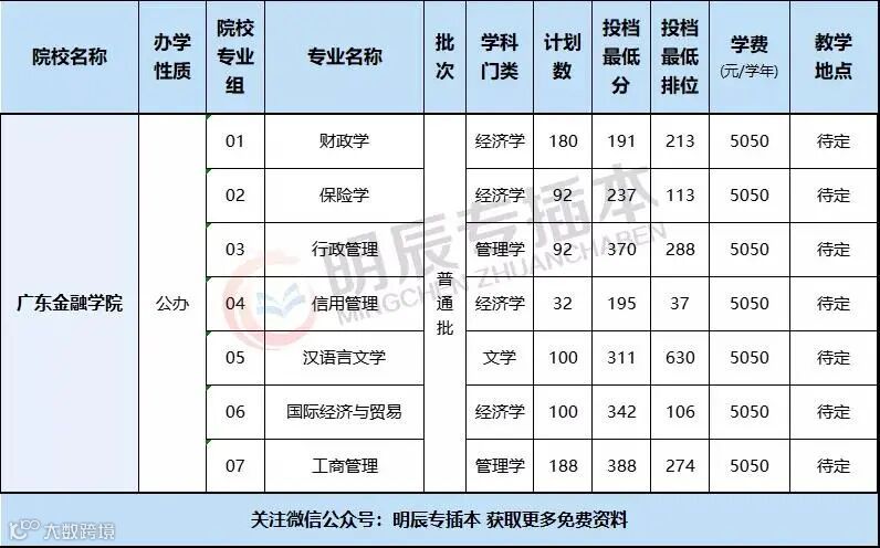 除行政管理专业外,广金均没有前置专业要求,因此常年招生规模可观,但许多专业的报考难度依旧不小。