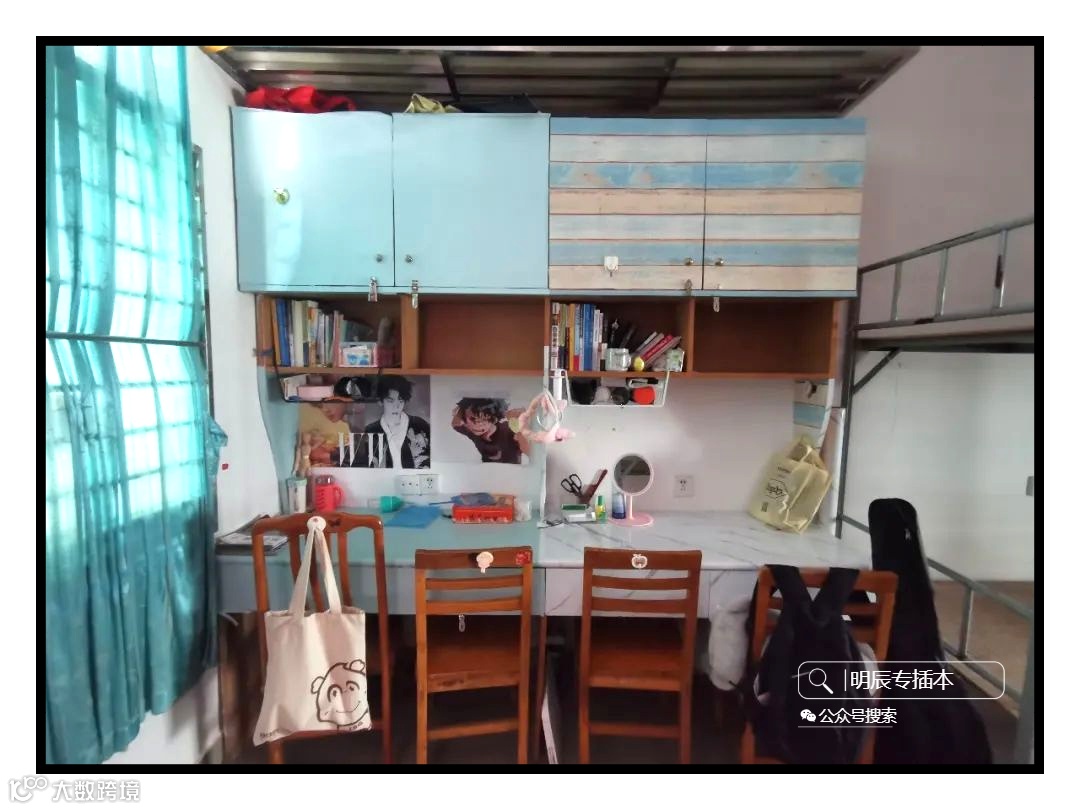 8人间虽然没有上床下桌,但是空间却比四人间大很多,有的宿舍一进门就是两排书桌靠着两边的墙壁四个人一排,有的宿舍则是集中床一排,书桌一排。