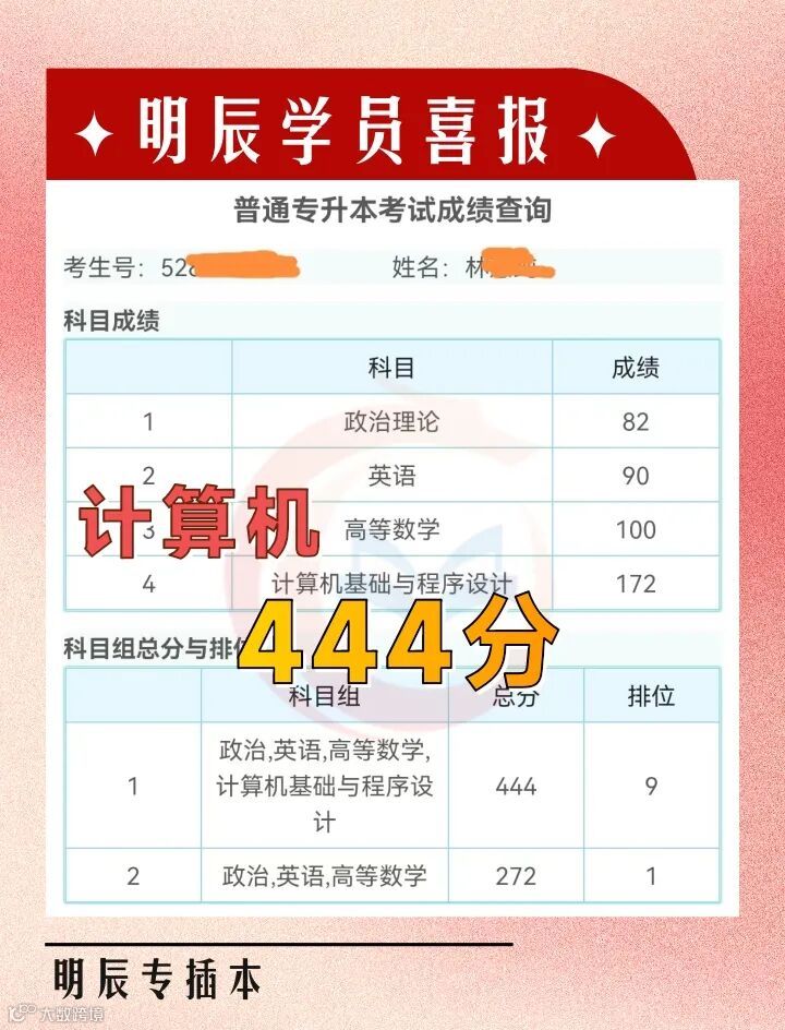 林同学 总分444分