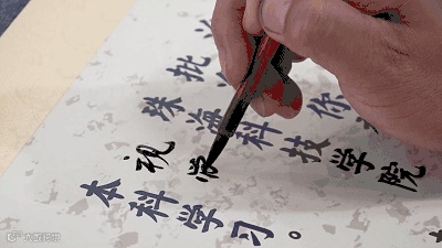 值得一提的是,今年珠海科技学院预计给近万新生发录取通知书,通知书上的考生录取信息全部由校友和师生用毛笔手写。