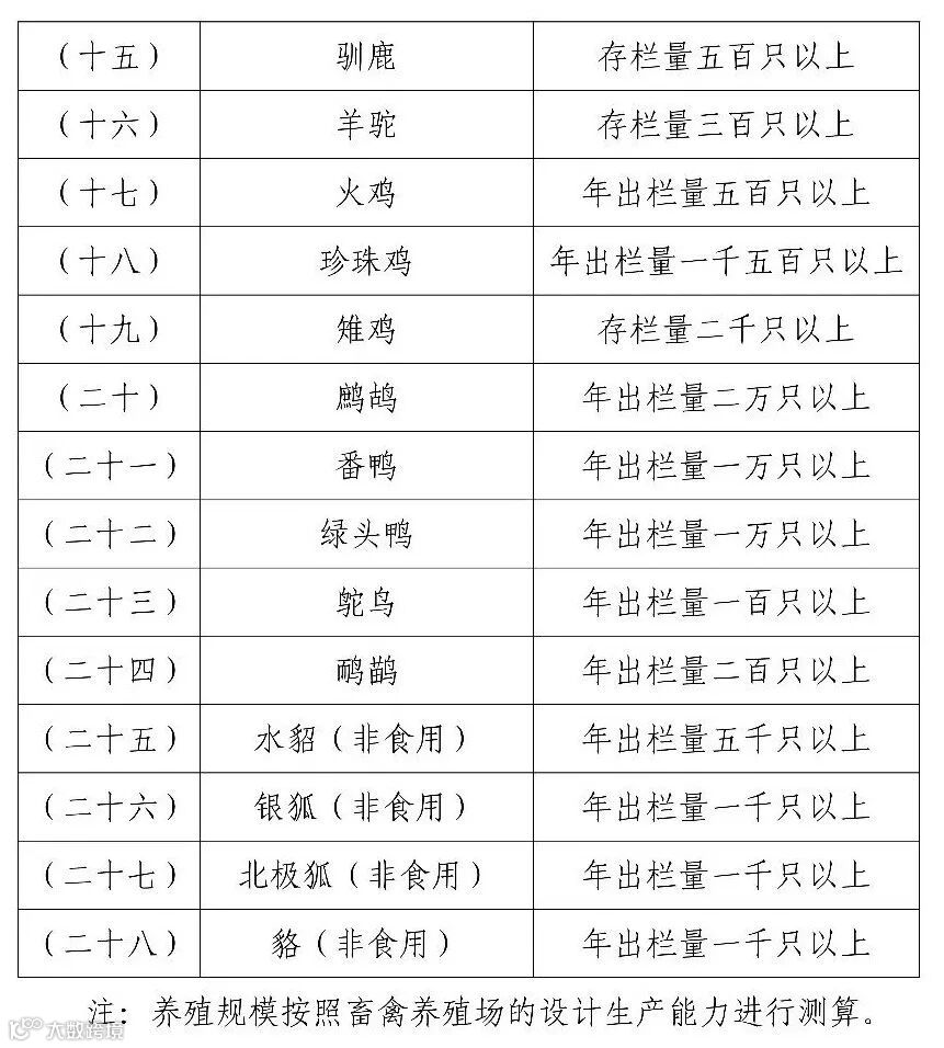 12.其他畜禽的规模标准按照有关规定执行。