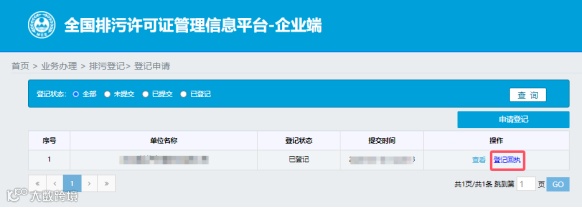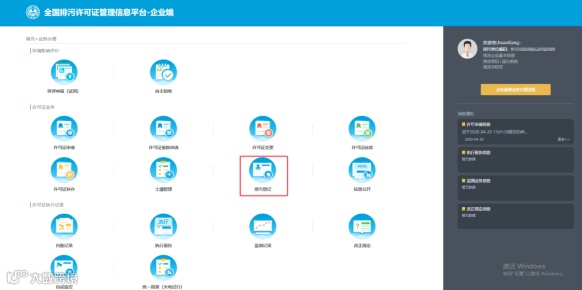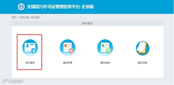 (3)进入企业界面后,点击“排污登记”。