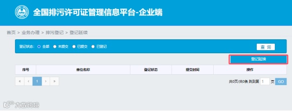 (4)进入登记页面,选择“登记延续”操作,点击右上角“登记延续”。