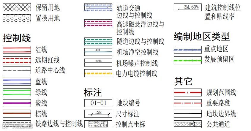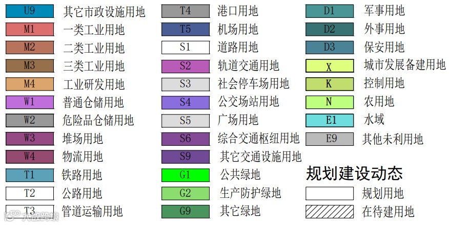 住宅用地 R、商业用地 B、工业用地 M、综合用地和其他用地。