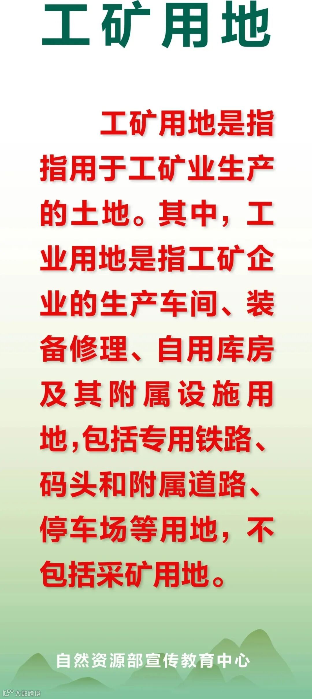 工业用地用于工业产生或者和工业生产有关的场所,比如独立设置的工厂、车间、仓库、设备房、手工业作坊、建筑安装的生产场地、排渣(灰)场地等用地都属于工业用地。