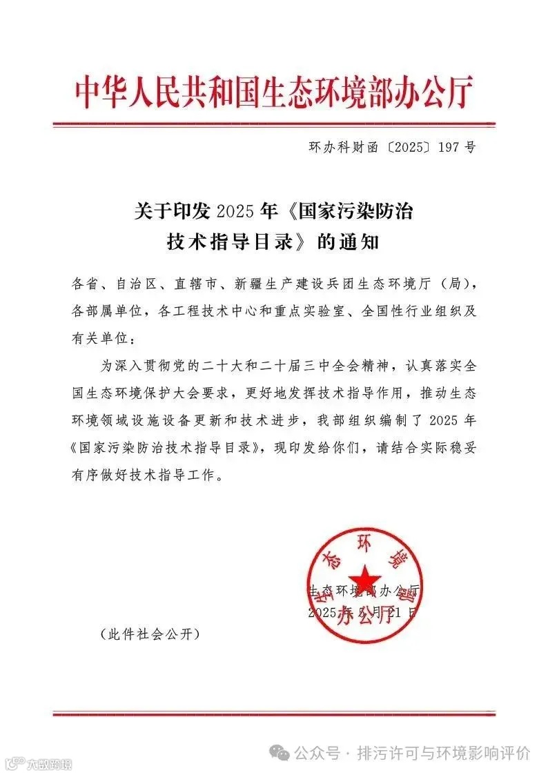 2025年5月21日,生态环境部印发2025年《国家污染防治技术指导目录》,含15类鼓励,14类低效污染防治技术。