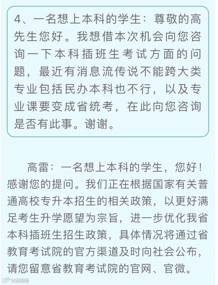 不知道各位对这张图还有没有印象,在2020年省教育考试院在线访谈活动中,考试院首次公开回应有关专插本考试改革事宜,原文如下: