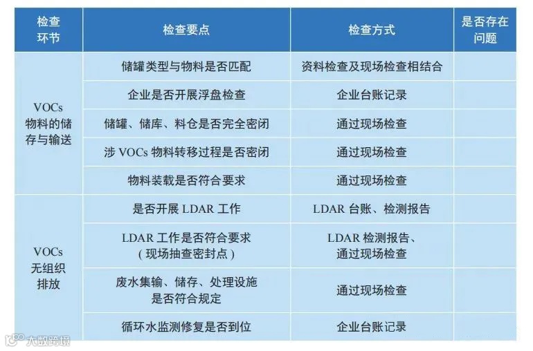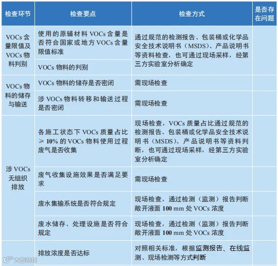 附:多个行业VOCs现场检查要点清单