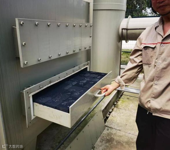 3、“治理设施为UV光氧+活性炭,与环评要求的二级活性炭不符,且UV灯管大部分损坏,活性炭装填方向与风向平行,存在废气短路通道;”