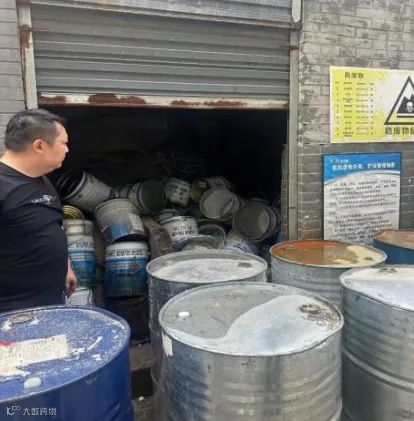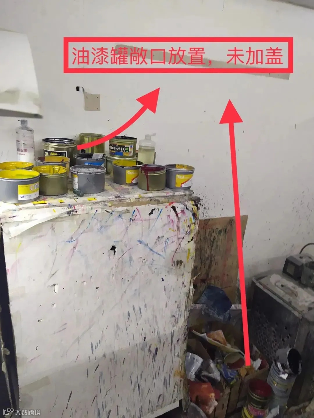 使用完的废油漆桶无及时封盖、打包好存放