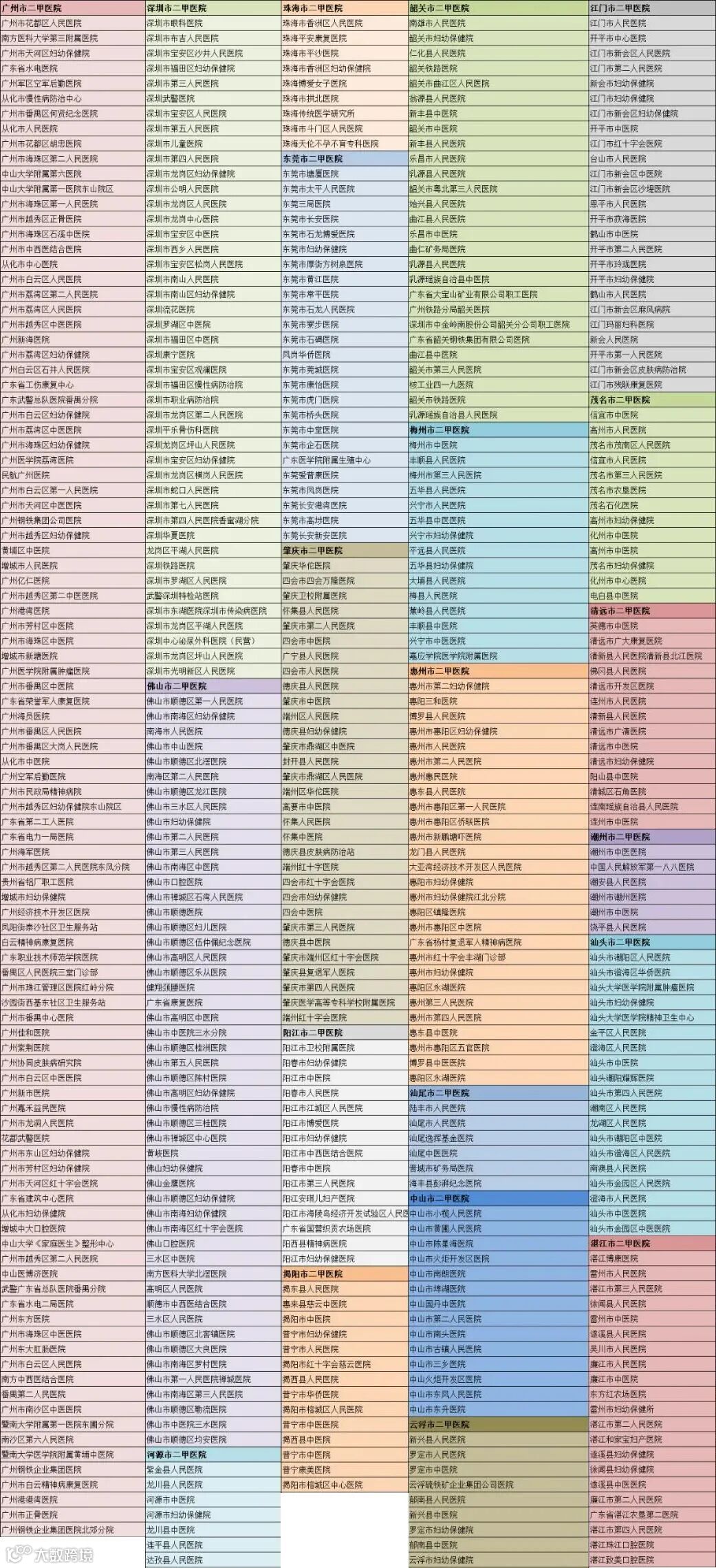 广东省二甲及以上医院汇总表